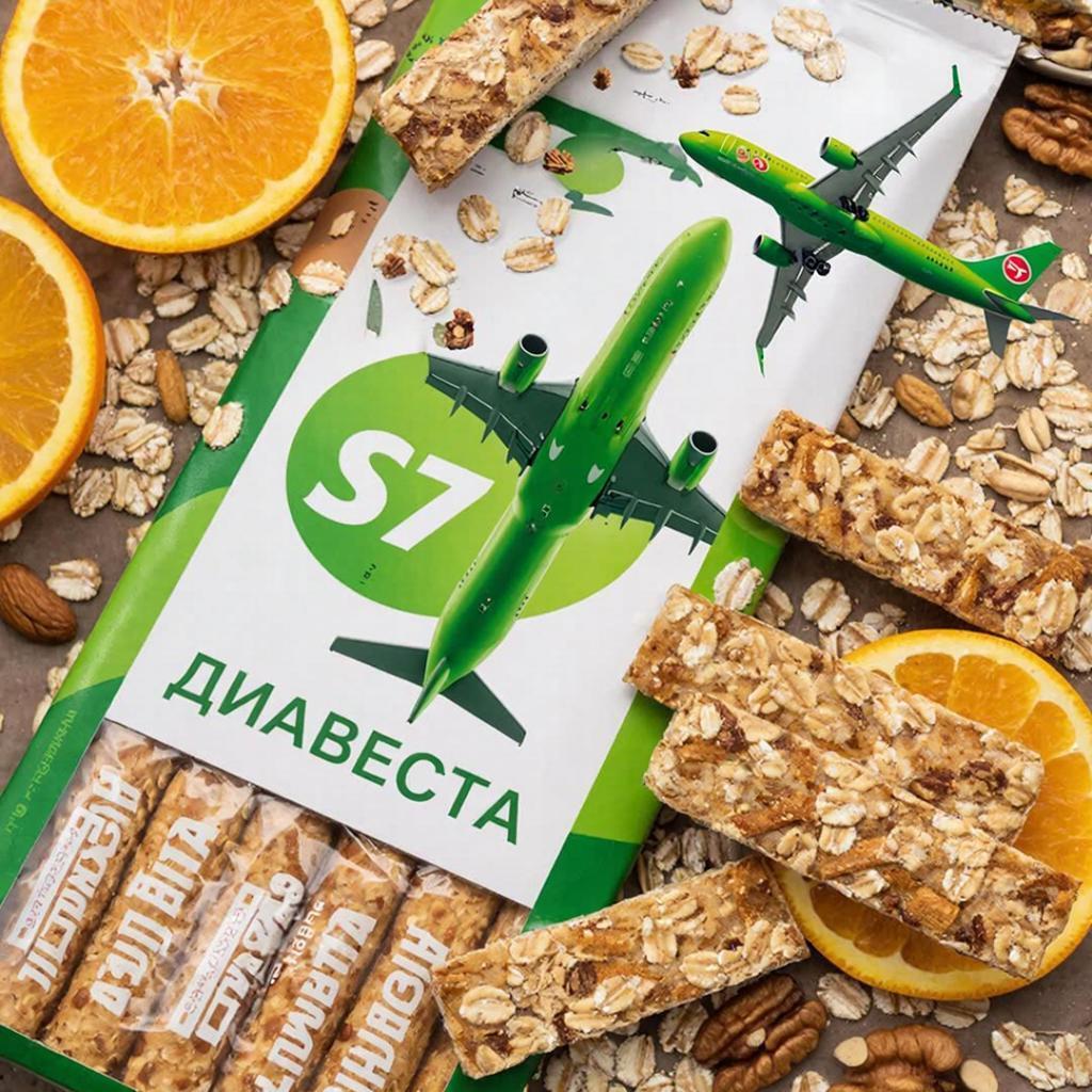 Заинтересовались, почему бортовое меню компании S7 пополнилось именно злаковыми батончиками ДиаВеста? Ответ довольно прост: наш продукт сочетает уникальное качество, прекрасный вкус и несомненные выгоды для пассажиров. Представьте, как приятно провести время в самолете, отдыхая в уютном кресле, а потом насладиться вкусным и здоровым перекусом, который моментально придаст сил и подарит приятное чувство сытости. Именно такими эмоциями руководствуются сотрудники S7, включая наши батончики в перечень любимых лакомств на борту.